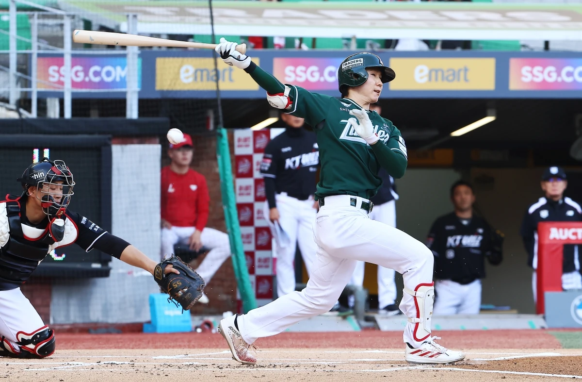 박성한은 1회말 첫 타석에서 KT 선발 고영표를 상대로 3루수 방면 땅볼을 친 뒤 1루로 전력 질주했다. 결과는 세이프였다. 하지만 공식 기록은 안타가 아닌 3루수 송구 실책이었다.