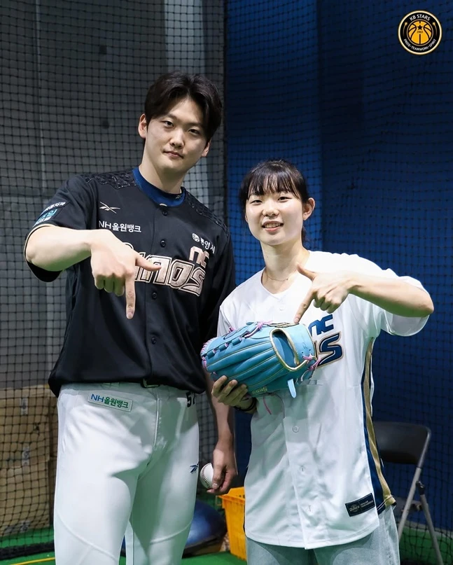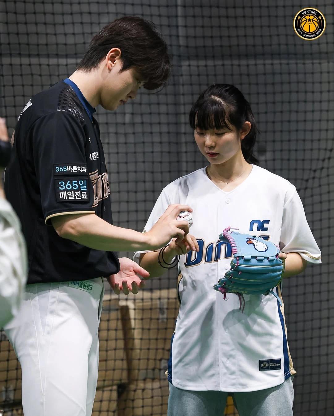 (엑스포츠뉴스 대전, 양정웅 기자) 지난해 시구자와 시구 지도자로 인연을 맺은 허예은(청주 KB스타즈)과 전사민(NC 다이노스).