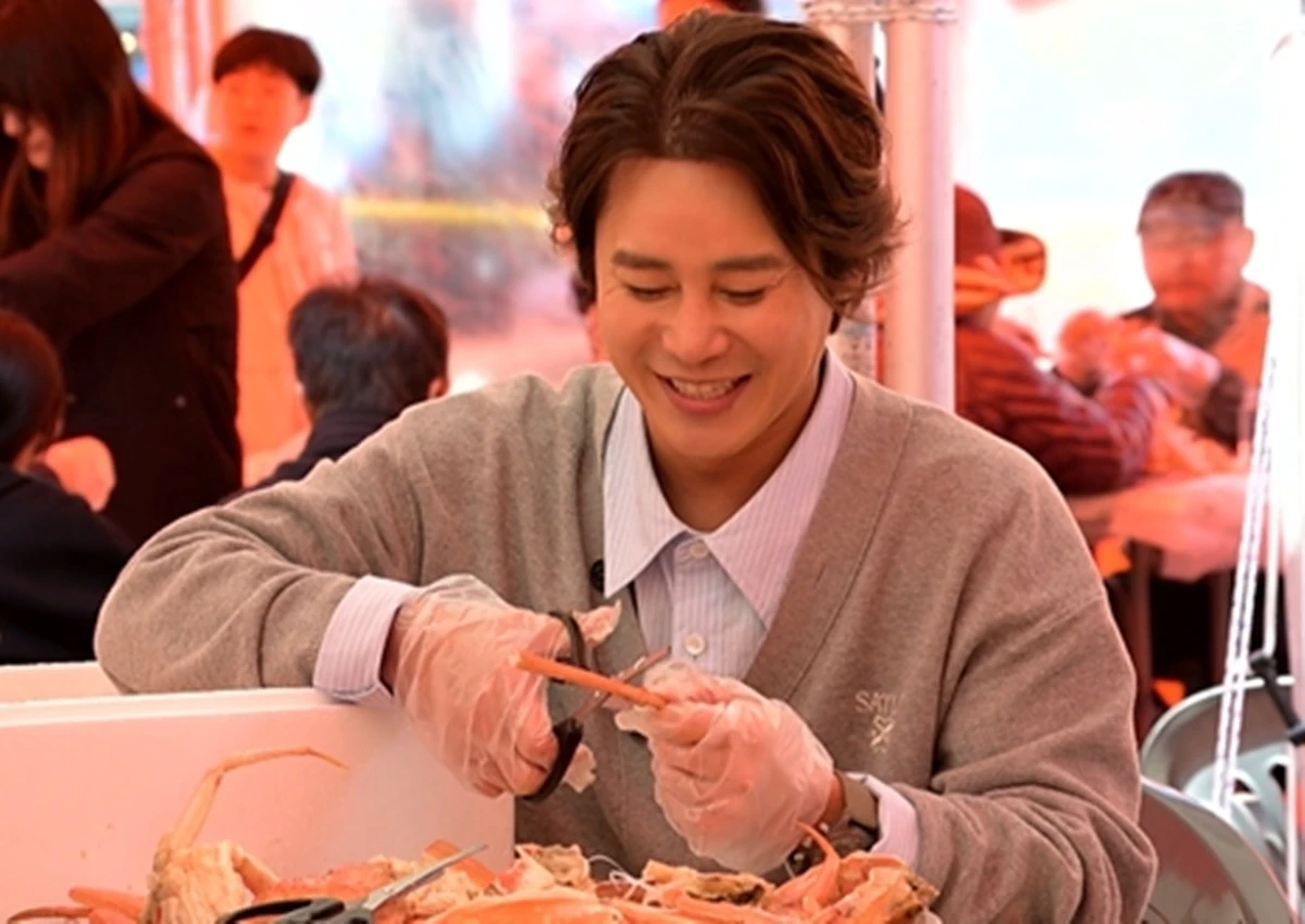이어 정태우는 직접 잡은 대게로 폭풍 먹방을 선보이며 아재 개그를 던져 인간미 넘치는 모습을 보여준다.