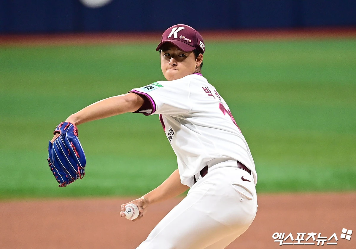 (엑스포츠뉴스 고척, 박지영 기자) 26일 오후 서울 구로구 고척스카이돔에서 열린 '2026 신한 SOL Bank KBO 리그' 삼성 라이온즈와 키움 히어로즈의 경기, 1회초 키움 선발투수 박준현이 역투하고 있다.