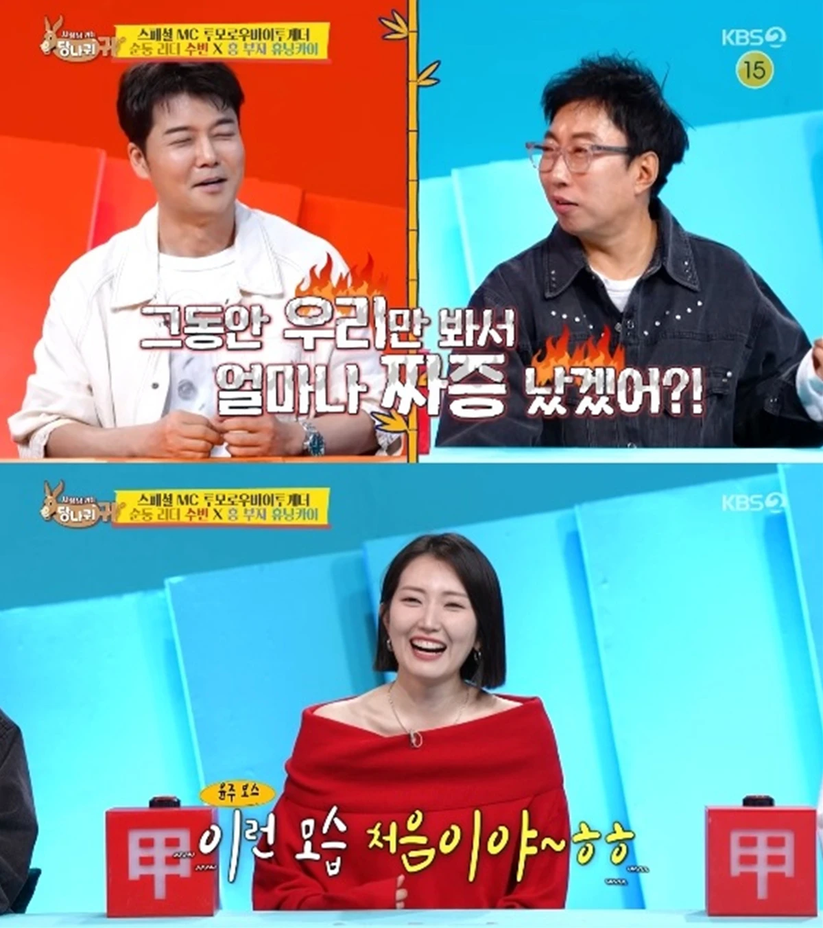 박명수는 전현무에게 "그동안 우리만 봐서 얼마나 짜증났겠느냐"고 김윤주를 이해하는 모습을 보였다.