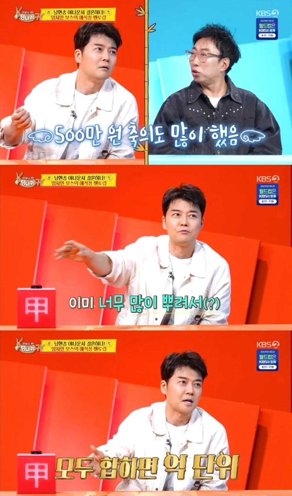 26일 방송된 KBS 2TV '사장님 귀는 당나귀 귀'에서는 전현무가 제일 많이 했던 축의금이 5백만 원이었다고 밝히는 모습이 전파를 탔다.