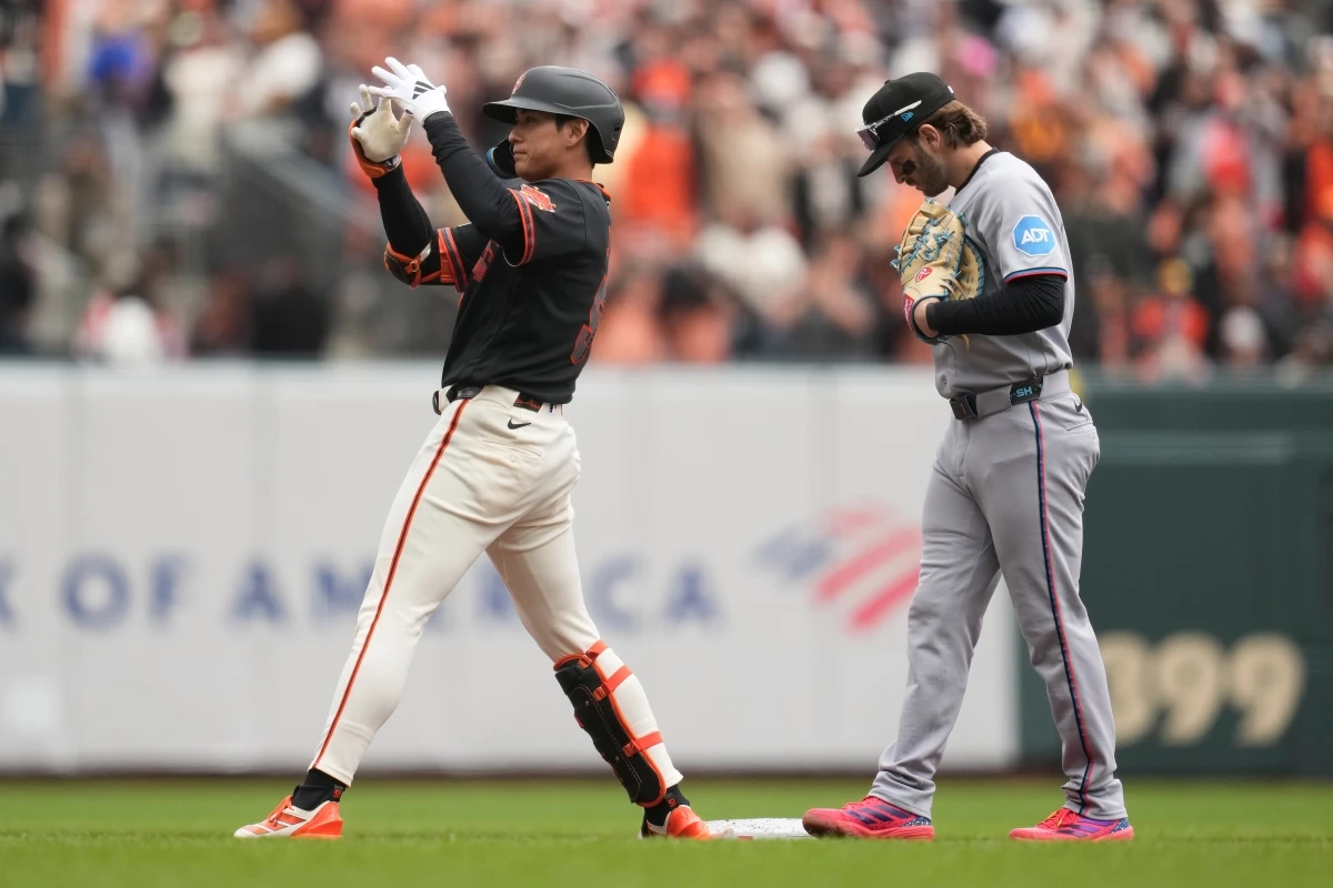 이정후는 첫 타석부터 출루에 성공했다. 2회말 1사에서 마이애미 선발 에우리 페레즈의 초구 시속 98.2마일(약 158km/h) 직구를 잡아당겨 올 시즌 개인 7번째 2루타를 만들었다.