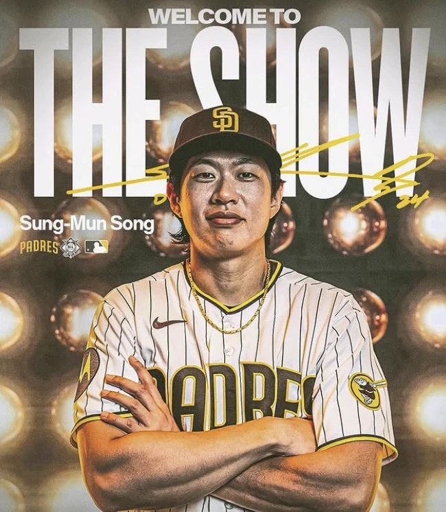 올해 샌디에이고 파드리스 유니폼을 입은 송성문이 빅리그 데뷔 신고를 했다.