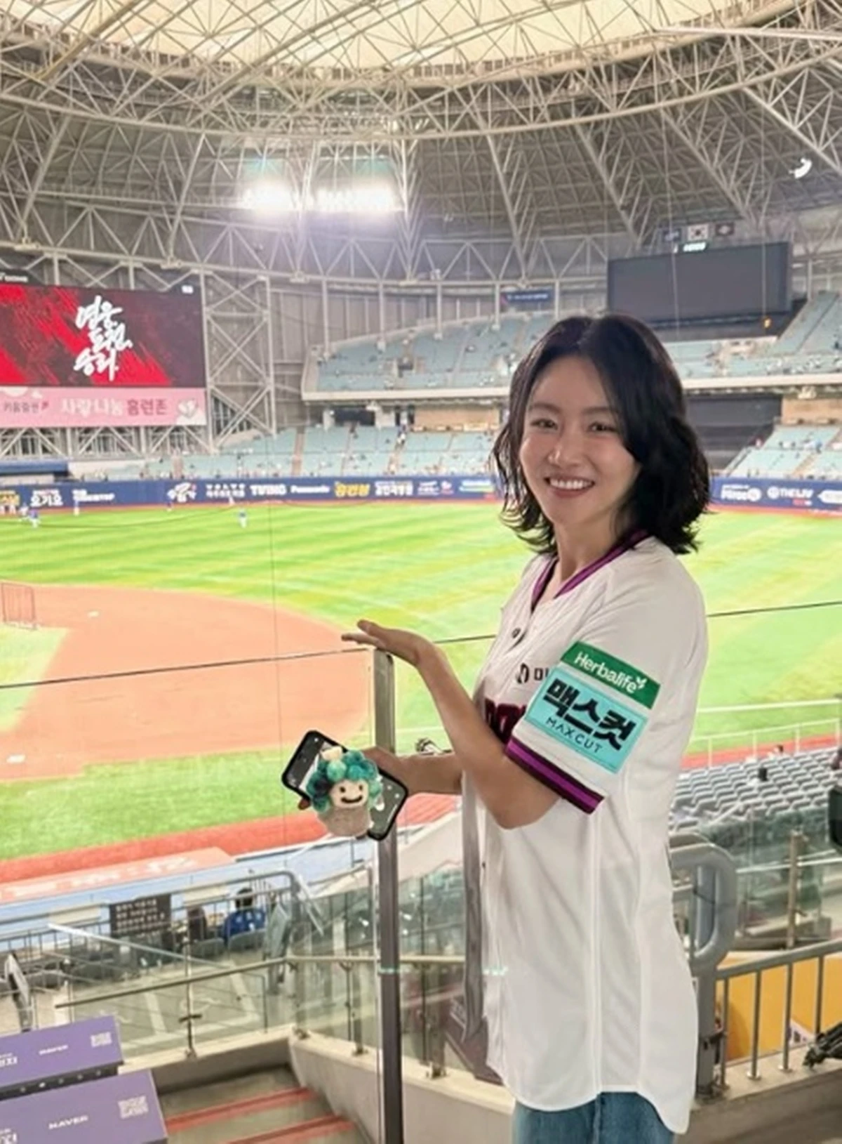 공개된 사진에는 야구장을 찾은 황우슬혜가 유니폼을 입은 채 관중석에서 환한 미소를 지으며 카메라를 응시하는 모습이 담겨 있다.