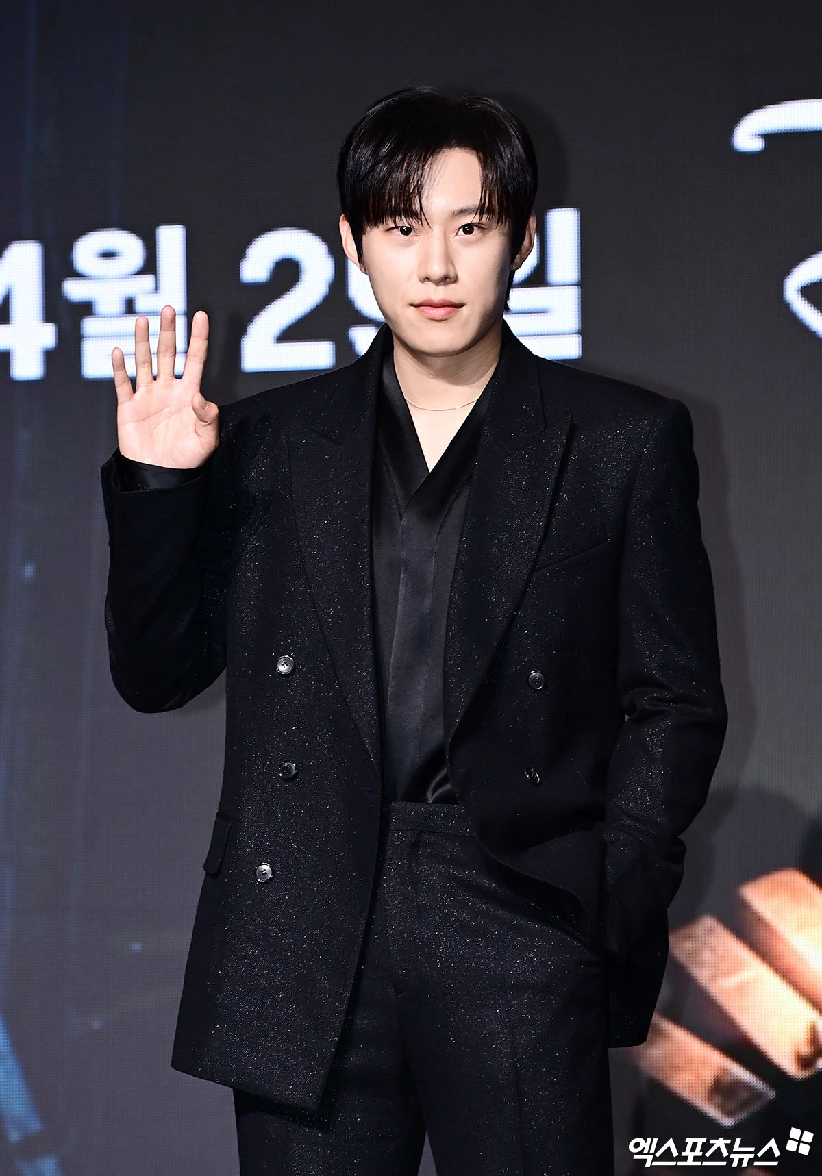 이날 제작발표회에 참석한 배우 김성철이 포토타임을 갖고 있다.