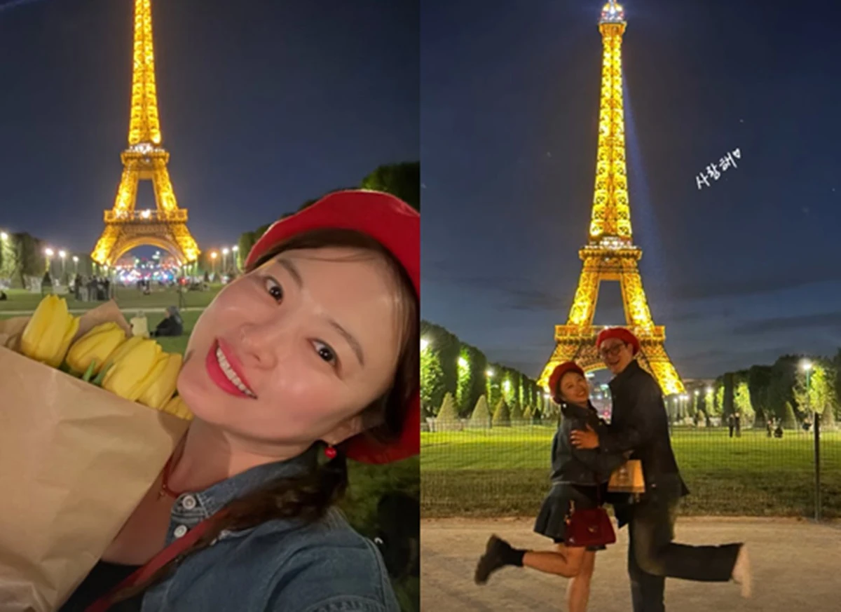 공개된 사진에는 프랑스 파리의 에펠탑을 배경으로 다정한 시간을 보내고 있는 심진화, 김원효 부부의 모습이 담겼다. 심진화는 빨간 베레모와 데님 스타일로 러블리한 매력을 드러냈고, 김원효와 함께 장난기 넘치는 포즈를 취하며 유쾌한 분위기를 자아냈다.