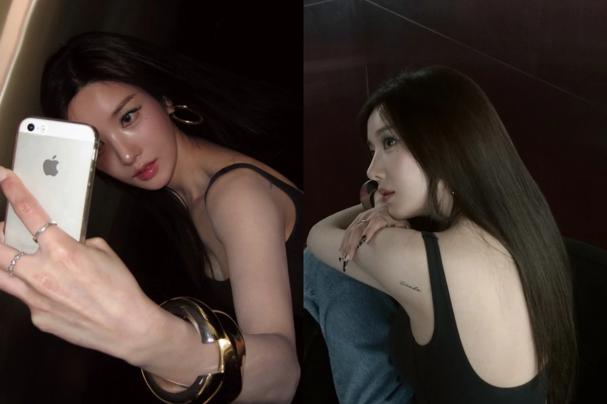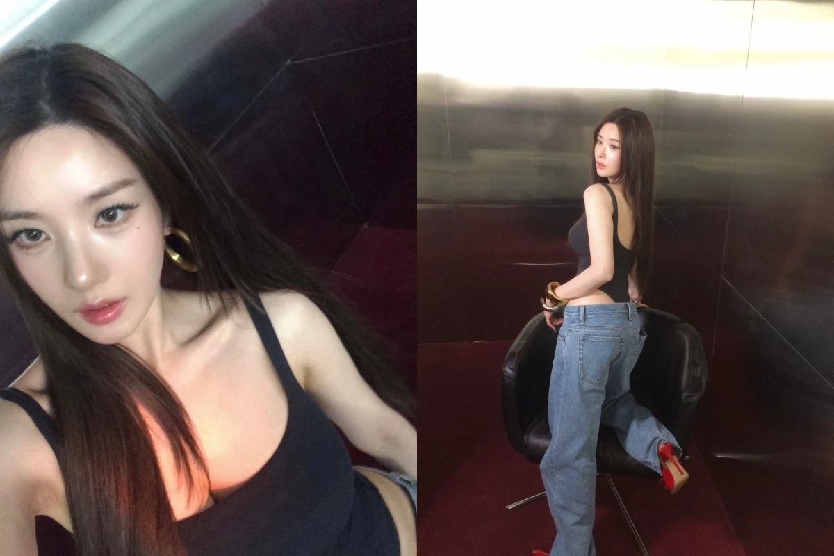 사진 속 권은비는 블랙 슬리브리스 톱과 루즈핏 데님 팬츠를 입고 심플하면서도 세련된 스타일을 선보였다. 특히 몸에 밀착되는 모노키니는 슬림한 실루엣을 강조해 섹시한 매력을 더했다.