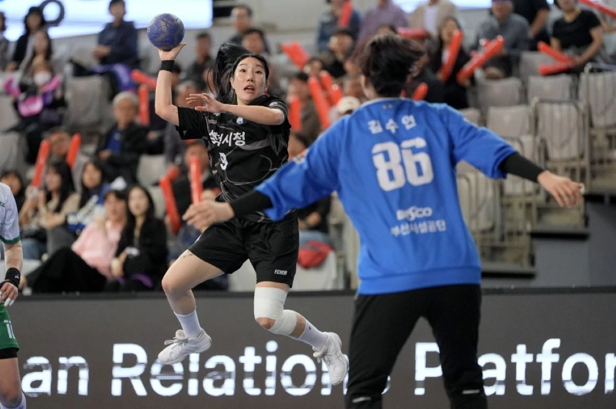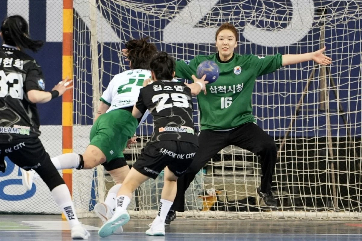 삼척시청은 27일 서울시 송파구 올림픽공원 핸드볼경기장(티켓링크 라이브 아레나)에서 열린 신한 SOL Bank 2025-2026 핸드볼 H리그 여자부 플레이오프에서 부산시설공단을 30-28로 이겼다.