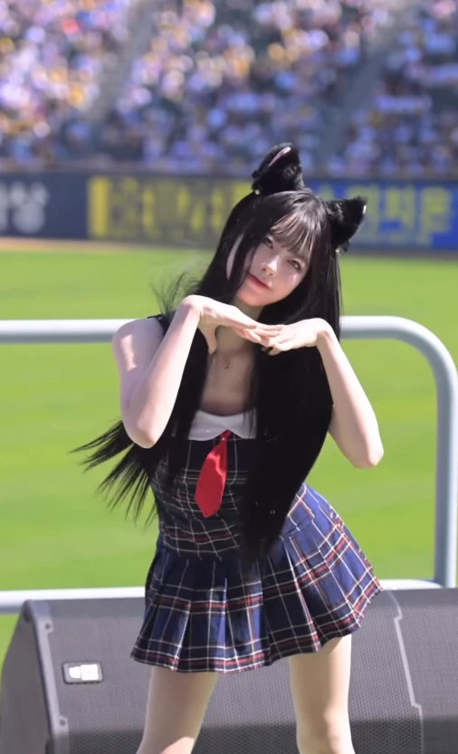 영상 속 주예지는 짧은 길이의 체크무늬 스커트와 민소매를 입고 고양이 귀 머리띠를 쓴 채 춤을 추고 있었다.