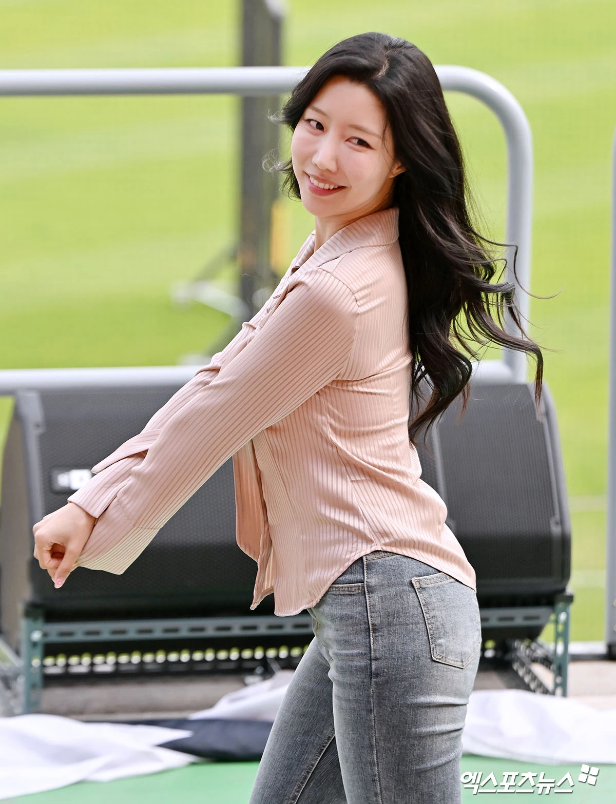 (엑스포츠뉴스 잠실, 김한준 기자) 28일 오후 서울 송파구 잠실야구장에서 열리는 '2026 신한 SOL Bank KBO리그' 삼성 라이온즈와 두산 베어스의 경기, 류현주 치어리더가 리허설에 임하고 있다.