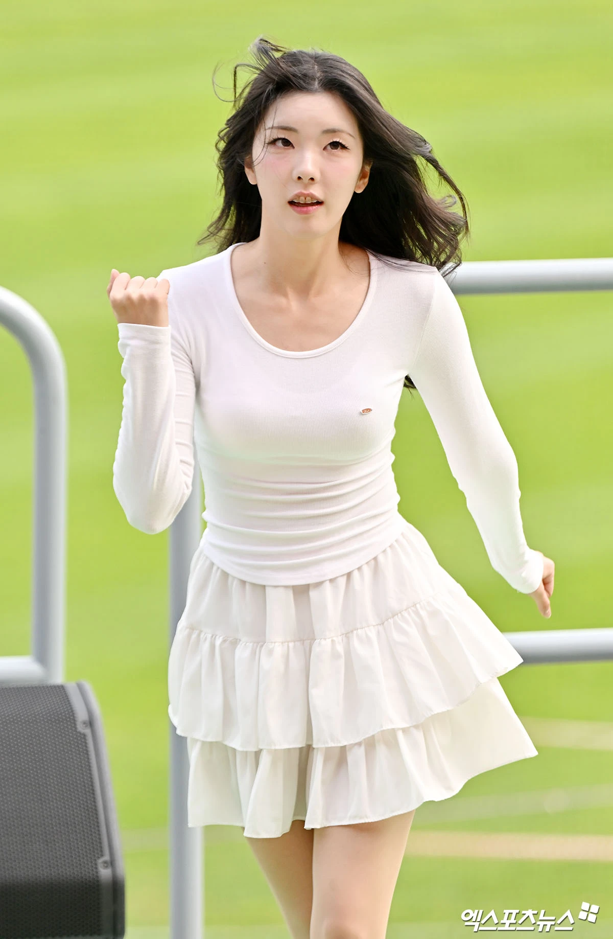 (엑스포츠뉴스 잠실, 김한준 기자) 28일 오후 서울 송파구 잠실야구장에서 열리는 '2026 신한 SOL Bank KBO리그' 삼성 라이온즈와 두산 베어스의 경기, 김인영 치어리더가 리허설에 임하고 있다.