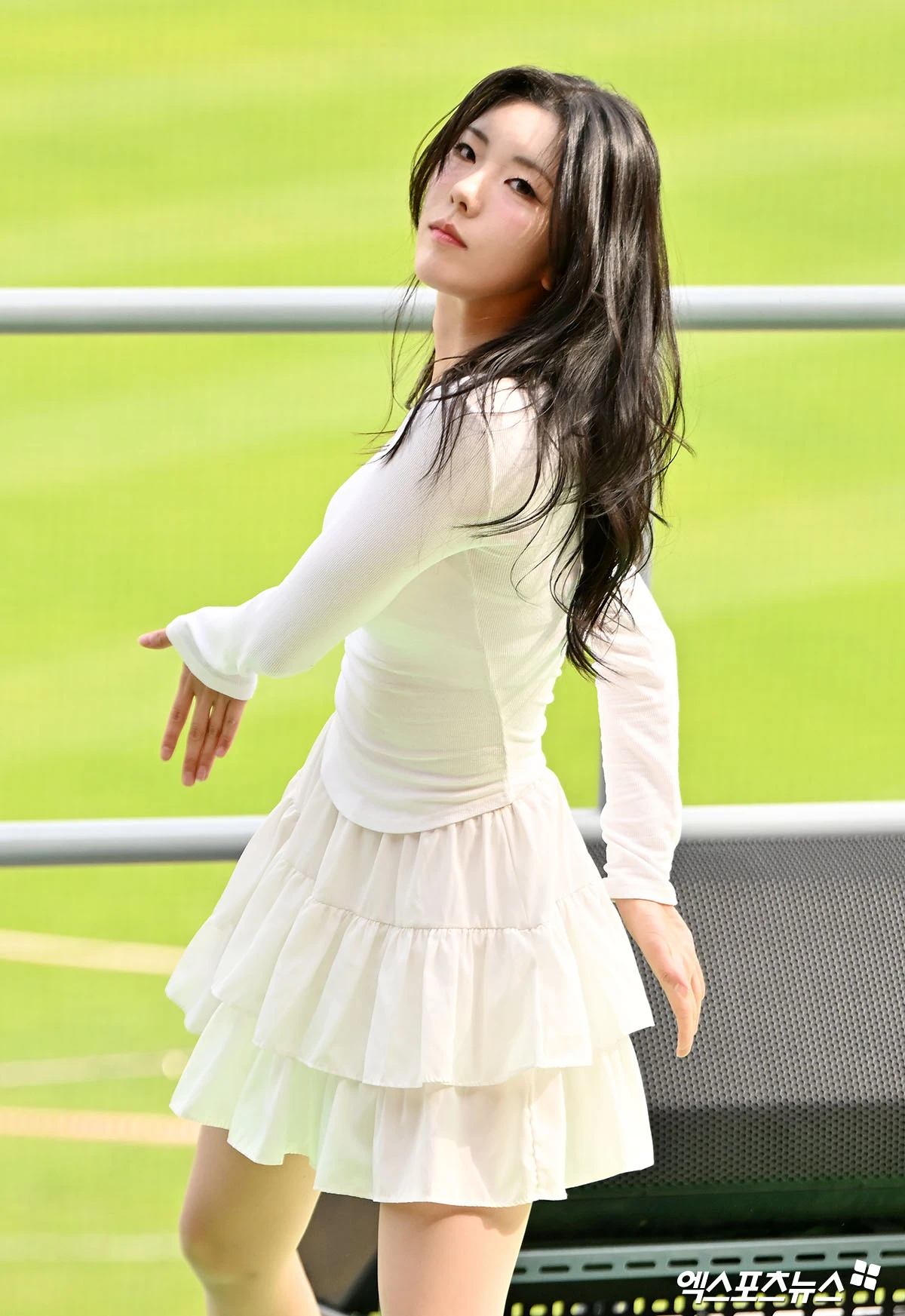 (엑스포츠뉴스 잠실, 김한준 기자) 28일 오후 서울 송파구 잠실야구장에서 열리는 '2026 신한 SOL Bank KBO리그' 삼성 라이온즈와 두산 베어스의 경기, 김인영 치어리더가 리허설에 임하고 있다.