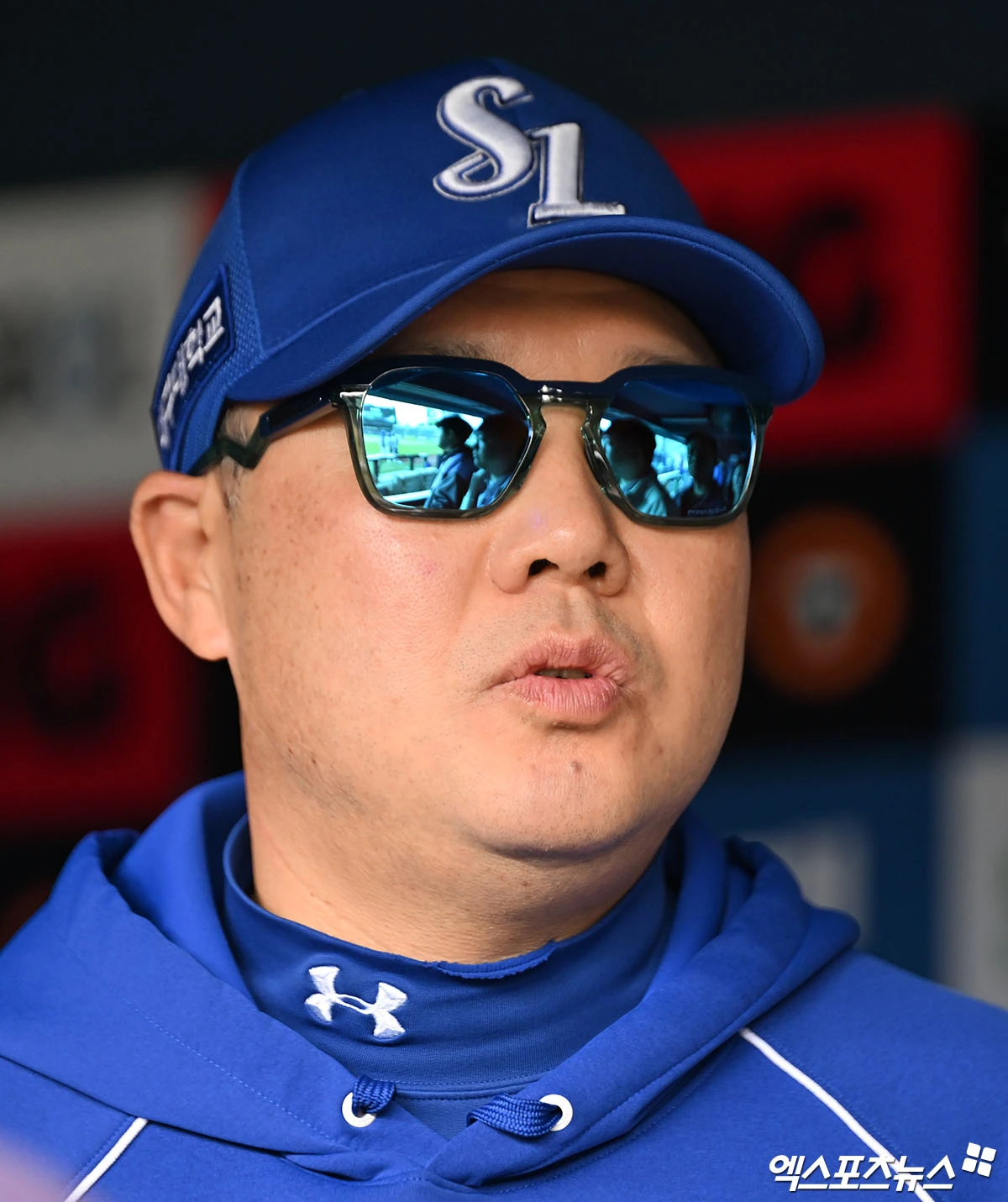 (엑스포츠뉴스 잠실, 김한준 기자) 28일 오후 서울 송파구 잠실야구장에서 열리는 '2026 신한 SOL Bank KBO리그' 삼성 라이온즈와 두산 베어스의 경기, 삼성 박진만 감독이 취재진과 대화를 나누고 있다.