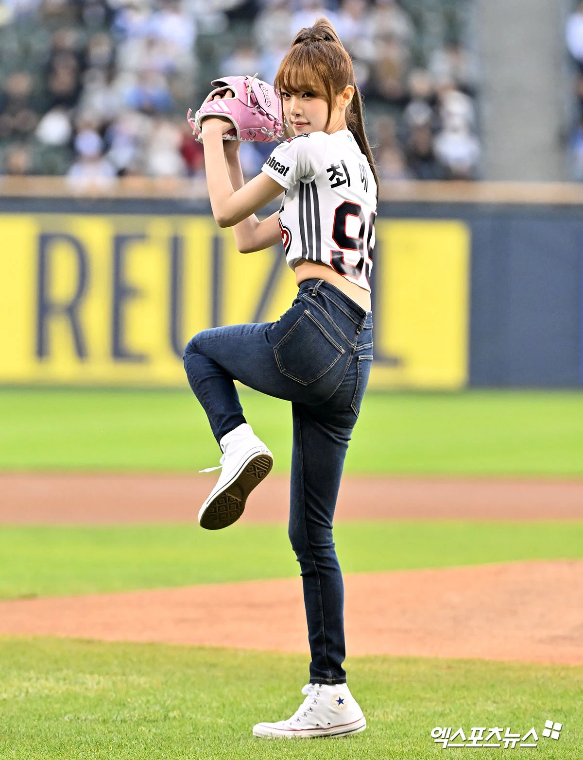 (엑스포츠뉴스 잠실, 김한준 기자) 28일 오후 서울 송파구 잠실야구장에서 열린 '2026 신한 SOL Bank KBO리그' 삼성 라이온즈와 두산 베어스의 경기, 경기 전 최예나가 시구에 임하고 있다.