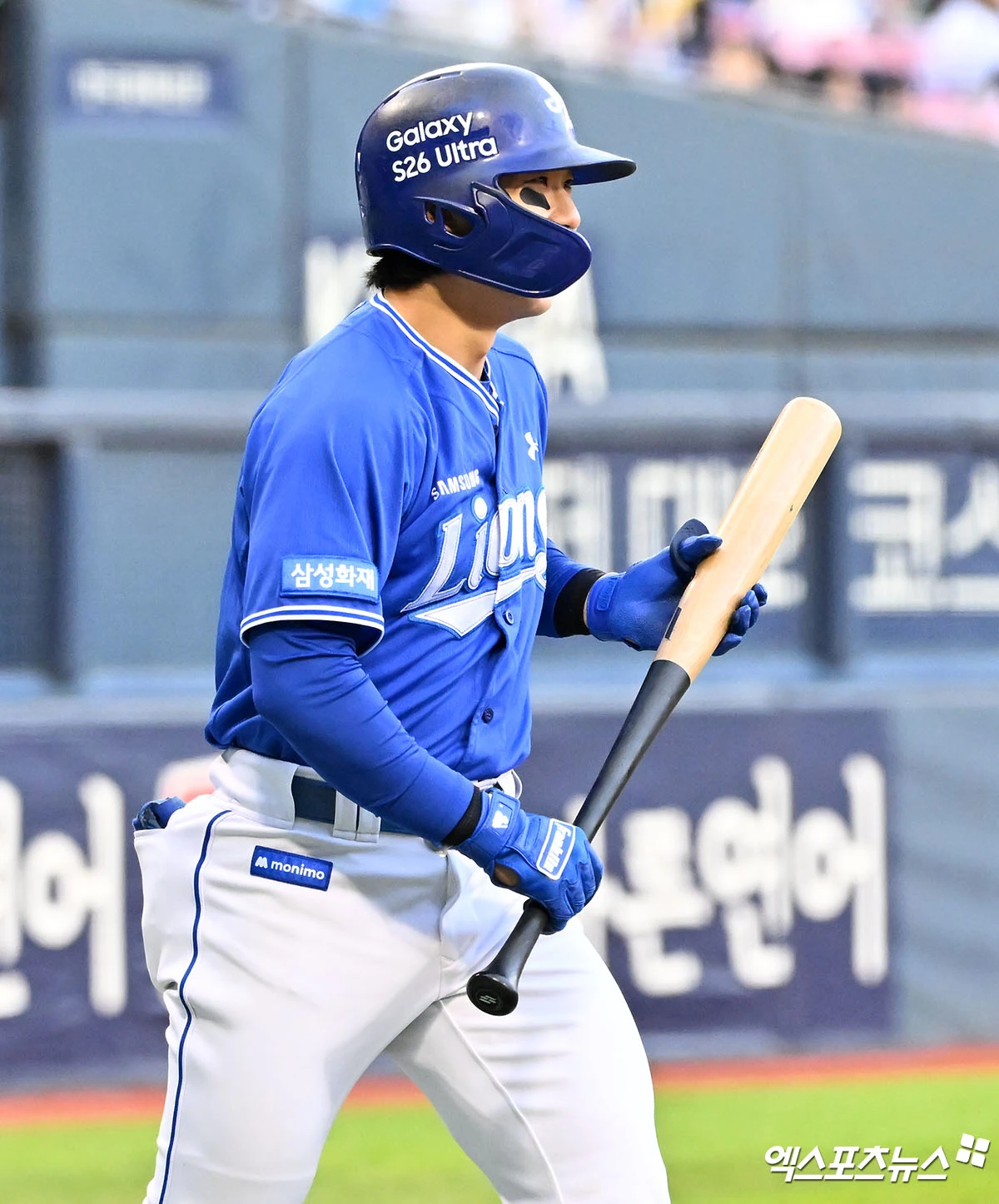 (엑스포츠뉴스 잠실, 김한준 기자) 28일 오후 서울 송파구 잠실야구장에서 열린 '2026 신한 SOL Bank KBO리그' 삼성 라이온즈와 두산 베어스의 경기, 1회초 1사 삼성 김성윤이 타석에 들어서고 있다.