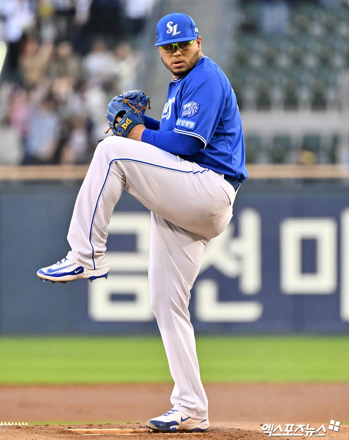 (엑스포츠뉴스 잠실, 김한준 기자) 28일 오후 서울 송파구 잠실야구장에서 열린 '2026 신한 SOL Bank KBO리그' 삼성 라이온즈와 두산 베어스의 경기, 1회말 삼성 선발투수 후라도가 공을 힘차게 던지고 있다.