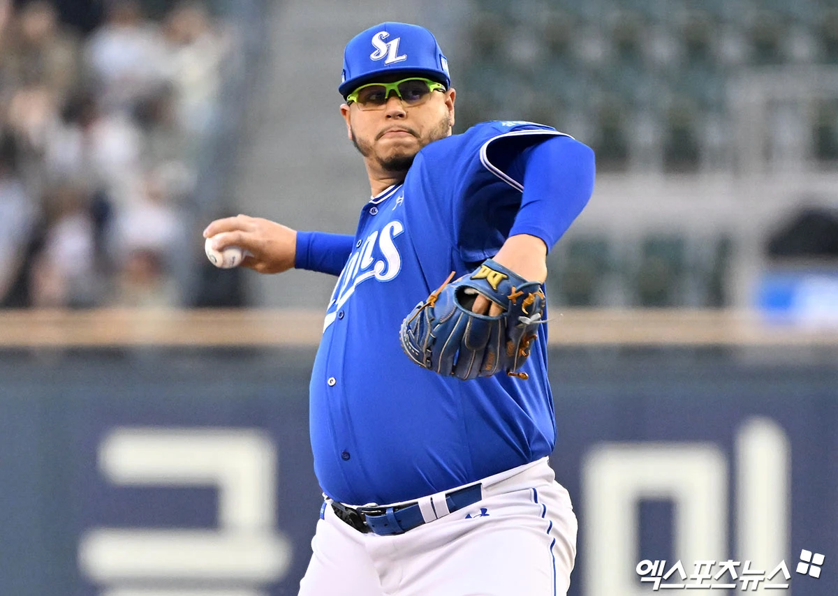 (엑스포츠뉴스 잠실, 김한준 기자) 28일 오후 서울 송파구 잠실야구장에서 열린 '2026 신한 SOL Bank KBO리그' 삼성 라이온즈와 두산 베어스의 경기, 1회말 삼성 선발투수 후라도가 공을 힘차게 던지고 있다.