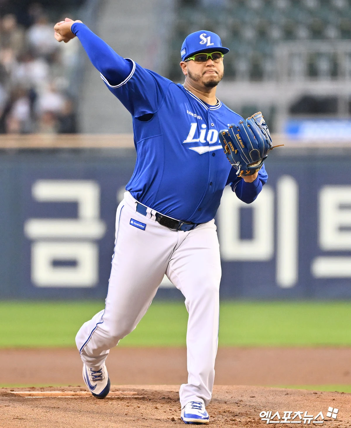 (엑스포츠뉴스 잠실, 김한준 기자) 28일 오후 서울 송파구 잠실야구장에서 열린 '2026 신한 SOL Bank KBO리그' 삼성 라이온즈와 두산 베어스의 경기, 1회말 삼성 선발투수 후라도가 공을 힘차게 던지고 있다.