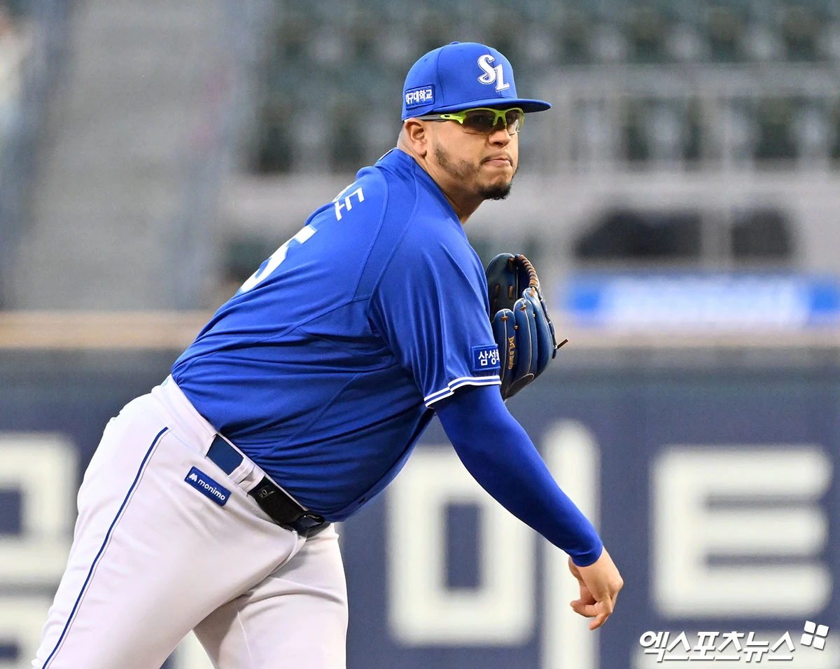(엑스포츠뉴스 잠실, 김한준 기자) 28일 오후 서울 송파구 잠실야구장에서 열린 '2026 신한 SOL Bank KBO리그' 삼성 라이온즈와 두산 베어스의 경기, 1회말 삼성 선발투수 후라도가 공을 힘차게 던지고 있다.
