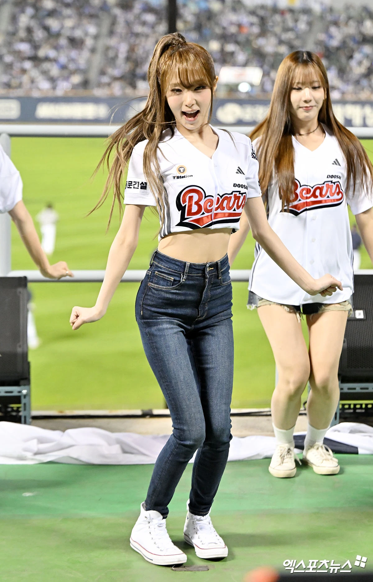 두산 여신 치어리더, 볼륨감 미쳤다…스쿨룩+고양이 귀까지 '팬들 난리'