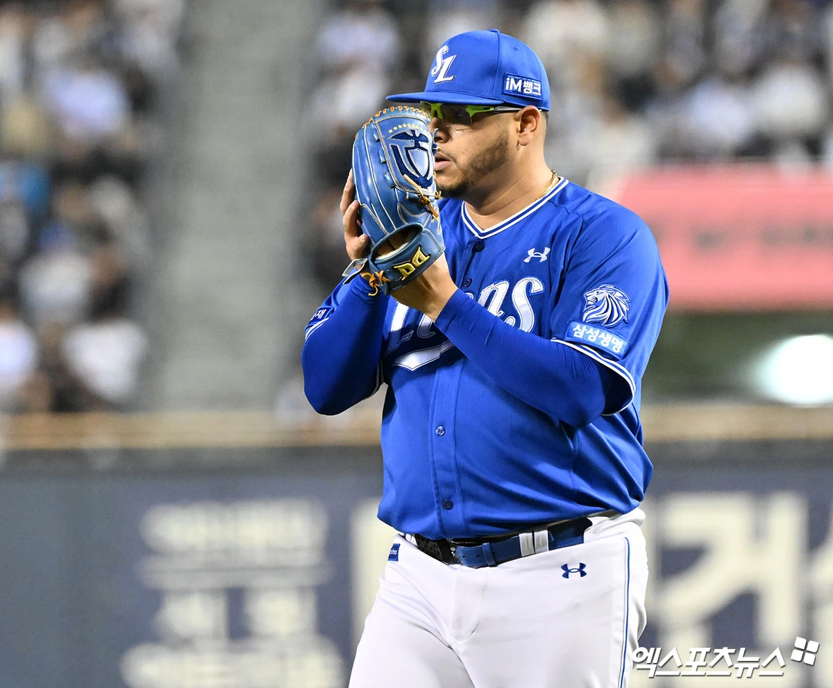 (엑스포츠뉴스 잠실, 김한준 기자) 28일 오후 서울 송파구 잠실야구장에서 열린 '2026 신한 SOL Bank KBO리그' 삼성 라이온즈와 두산 베어스의 경기, 7회말 수비를 마친 삼성 후라도가 더그아웃으로 향하고 있다.