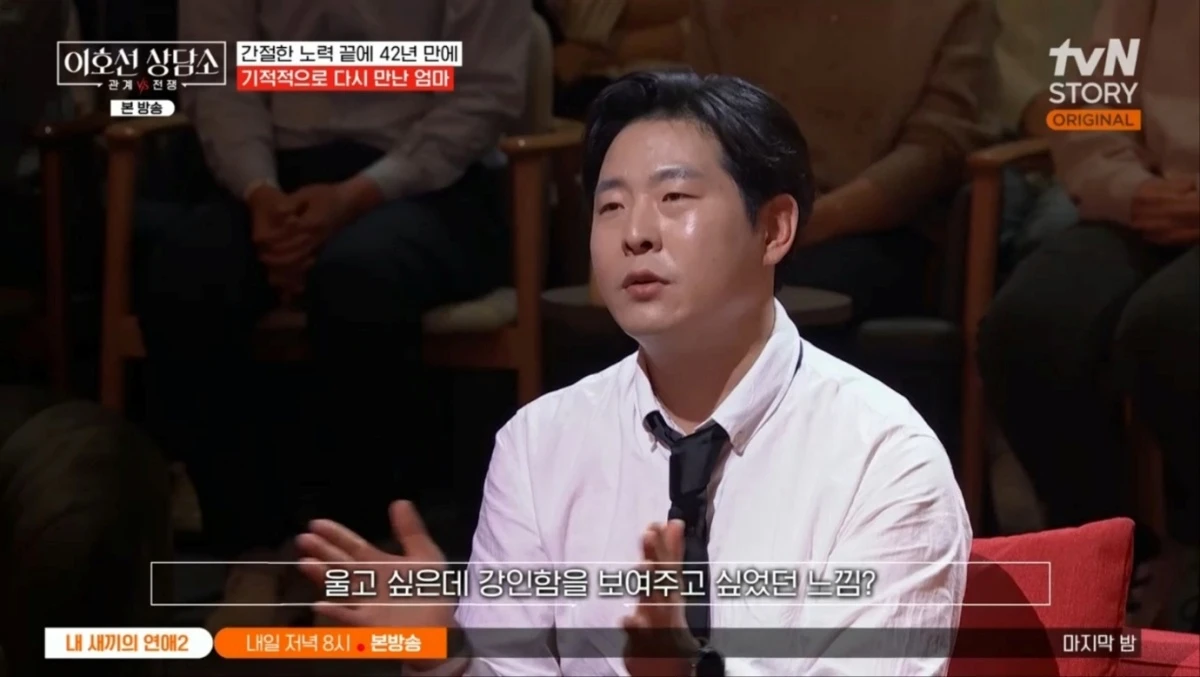 어머니와 42년 만에 재회한 사연에 대해 이호선은 "42년 전에 어머니와 헤어진 거냐"고 물었고, 김대성은 "아예 얼굴을 못 봤다"고 답했다.