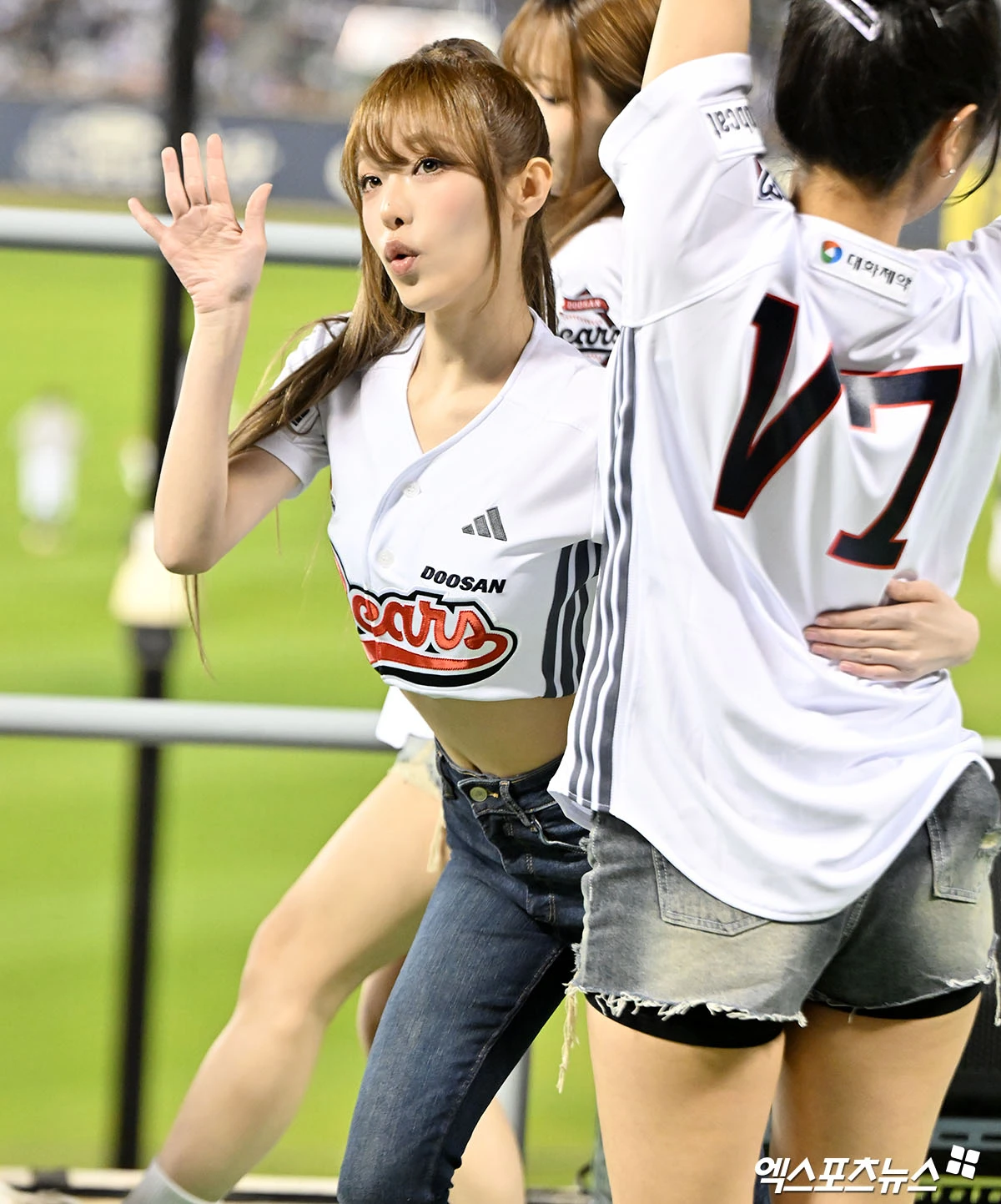 (엑스포츠뉴스 잠실, 김한준 기자) 28일 오후 서울 송파구 잠실야구장에서 열린 '2026 신한 SOL Bank KBO리그' 삼성 라이온즈와 두산 베어스의 경기, 클리닝타임때 가수 최예나가 멋진 공연을 선보이고 있다.