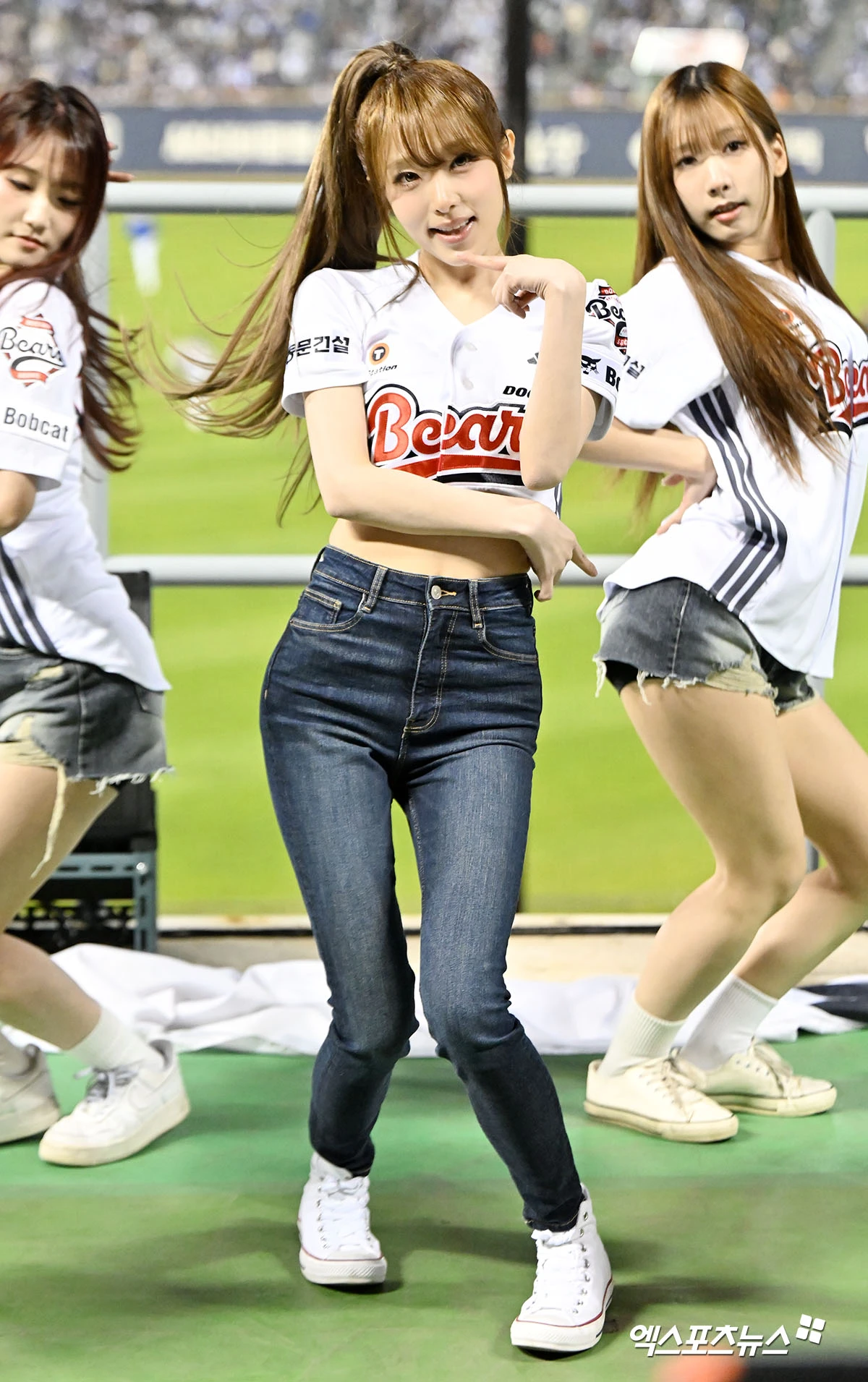 (엑스포츠뉴스 잠실, 김한준 기자) 28일 오후 서울 송파구 잠실야구장에서 열린 '2026 신한 SOL Bank KBO리그' 삼성 라이온즈와 두산 베어스의 경기, 클리닝타임때 가수 최예나가 멋진 공연을 선보이고 있다.