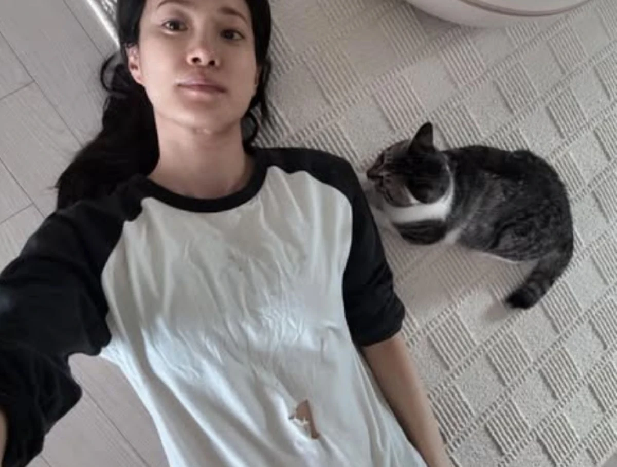 공개된 사진 속 옥자연은 반려묘와 함께 편안히 누워 있는 모습.