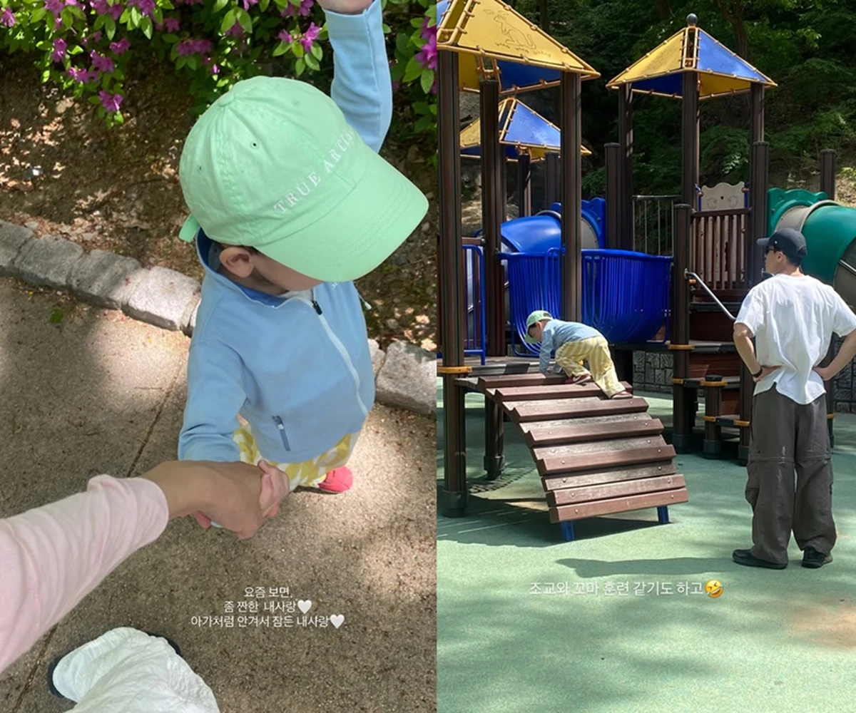이어 아들의 손을 잡고 걷는 자신의 손을 찍은 그는 "요즘 보면 좀 짠한 내 사랑♡ 아기처럼 안겨서 잠든 내 사랑♡"이라며 아들을 향한 애정을 내비쳤다.