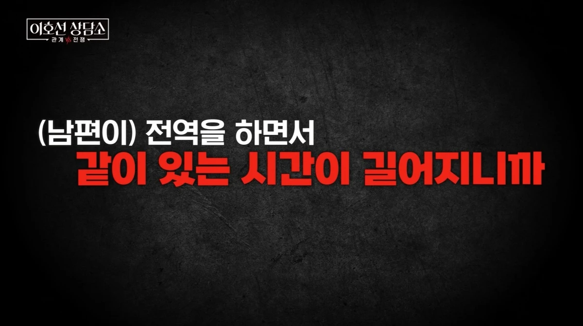 28일 방송된 tvN STORY '이호선 상담소'에 '군인 퇴직 후 매일 갈등을 겪는 가정'의 이야기가 공개됐다.