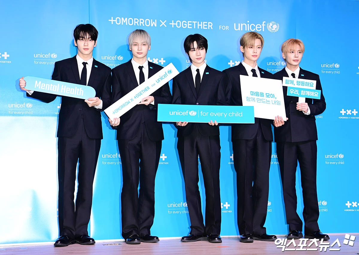 (엑스포츠뉴스 박지영 기자) 29일 오전 서울 유니세프위원회에서 투모로우바이투게더(TXT)와 함께하는 전 세계 아동·청소년 마음건강 지원 '투게더 포 투모로우' 캠페인 기자 간담회가 진행됐다.