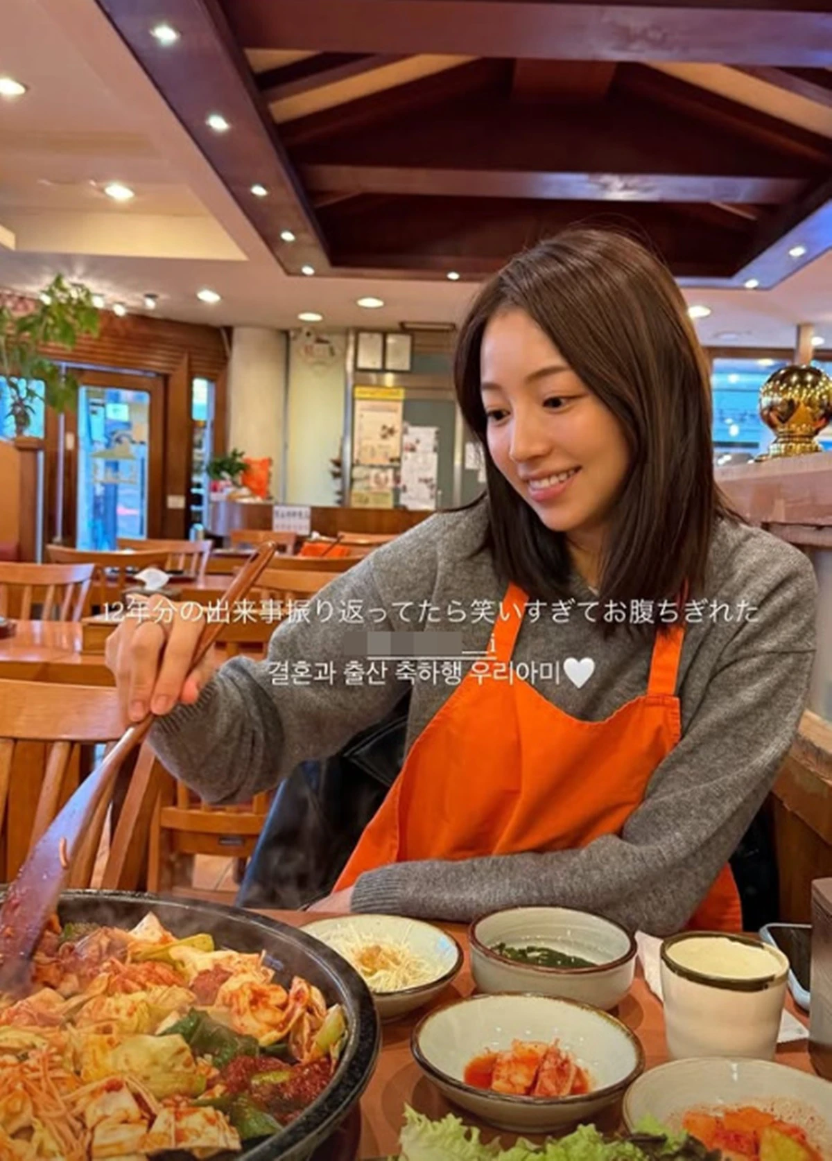 공개된 사진 속 이아미는 한 식당에서 식사를 즐기며 환한 미소를 짓고 있는 모습이다. 오렌지색 앞치마를 두른 채 자연스러운 분위기 속에서도 또렷한 이목구비와 청순한 비주얼이 눈길을 끈다.
