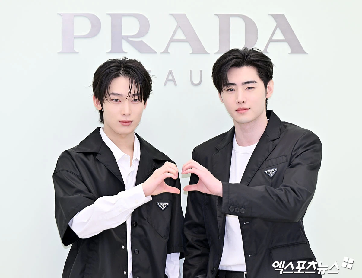 이날 행사에 참석한 엔하이픈 선우와 성훈이 포즈를 취하고 있다.