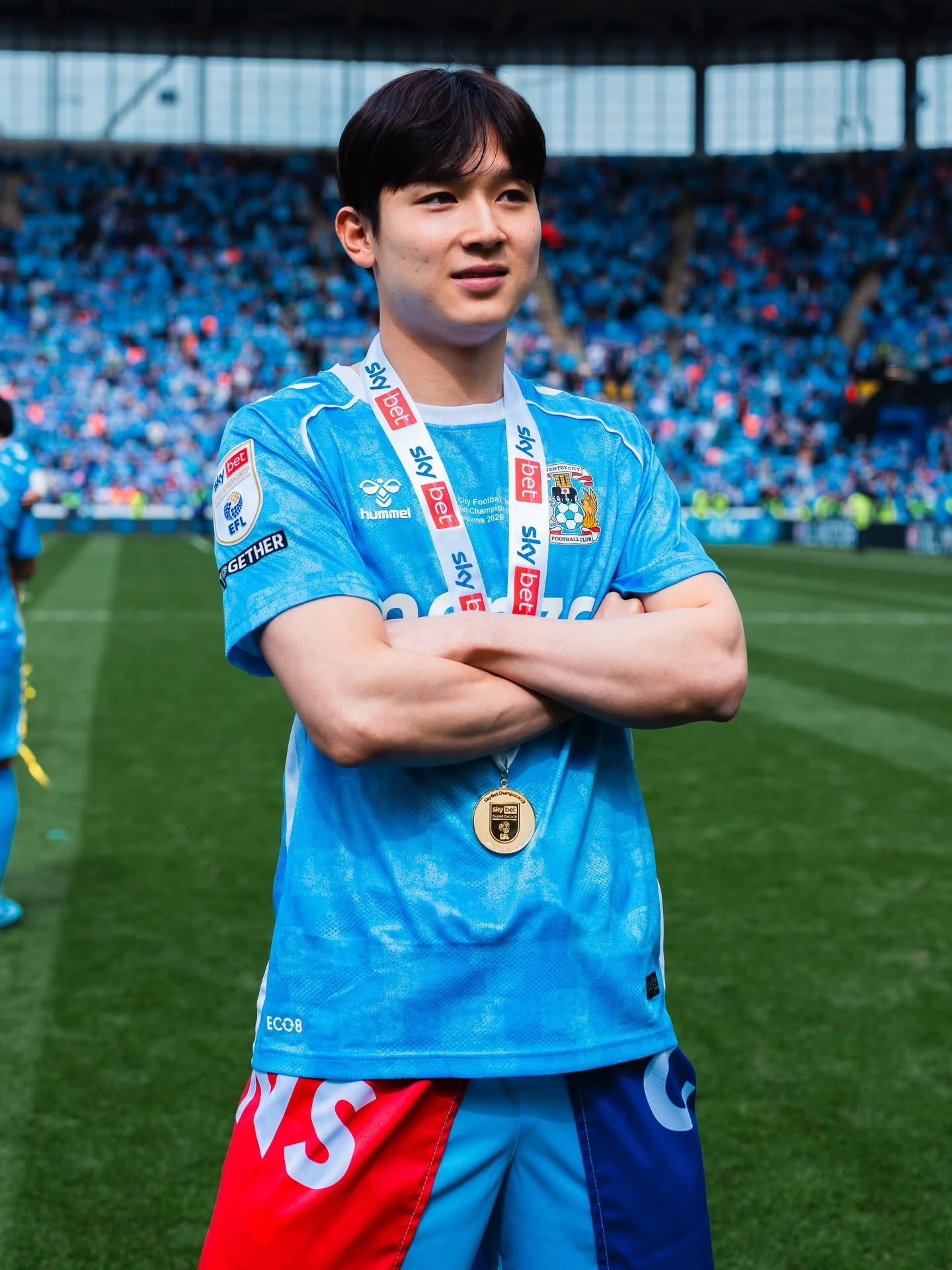 한국 축구 유망주 양민혁(20)이 잉글랜드 챔피언십(2부 리그) 우승 메달을 목에 걸며 또 하나의 의미 있는 이력을 추가했다. 코번트리 구단도 그의 금메달 인증 샷을 올렸다.