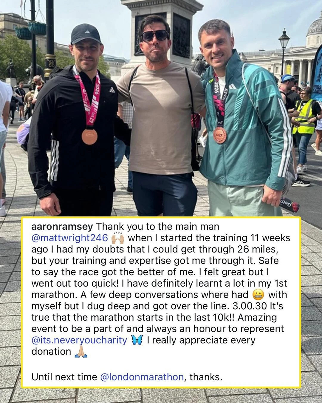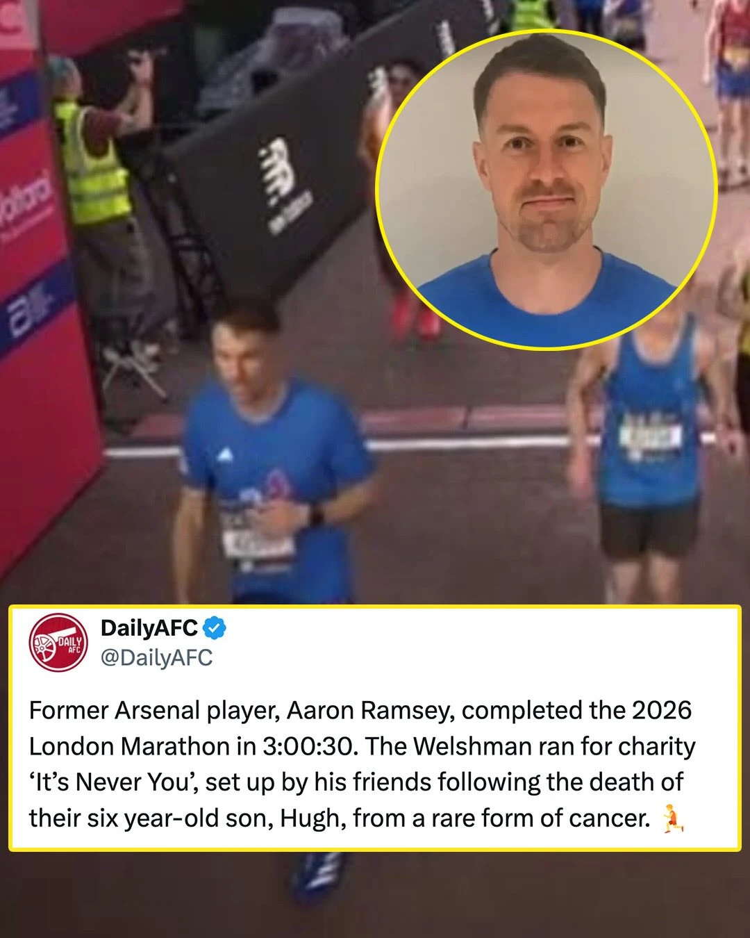 아스널과 웨일스 대표팀에서 활약했던 램지는 지난 주말 2026 런던 마라톤에 참가해 3시간00분30초의 기록으로 완주했다.