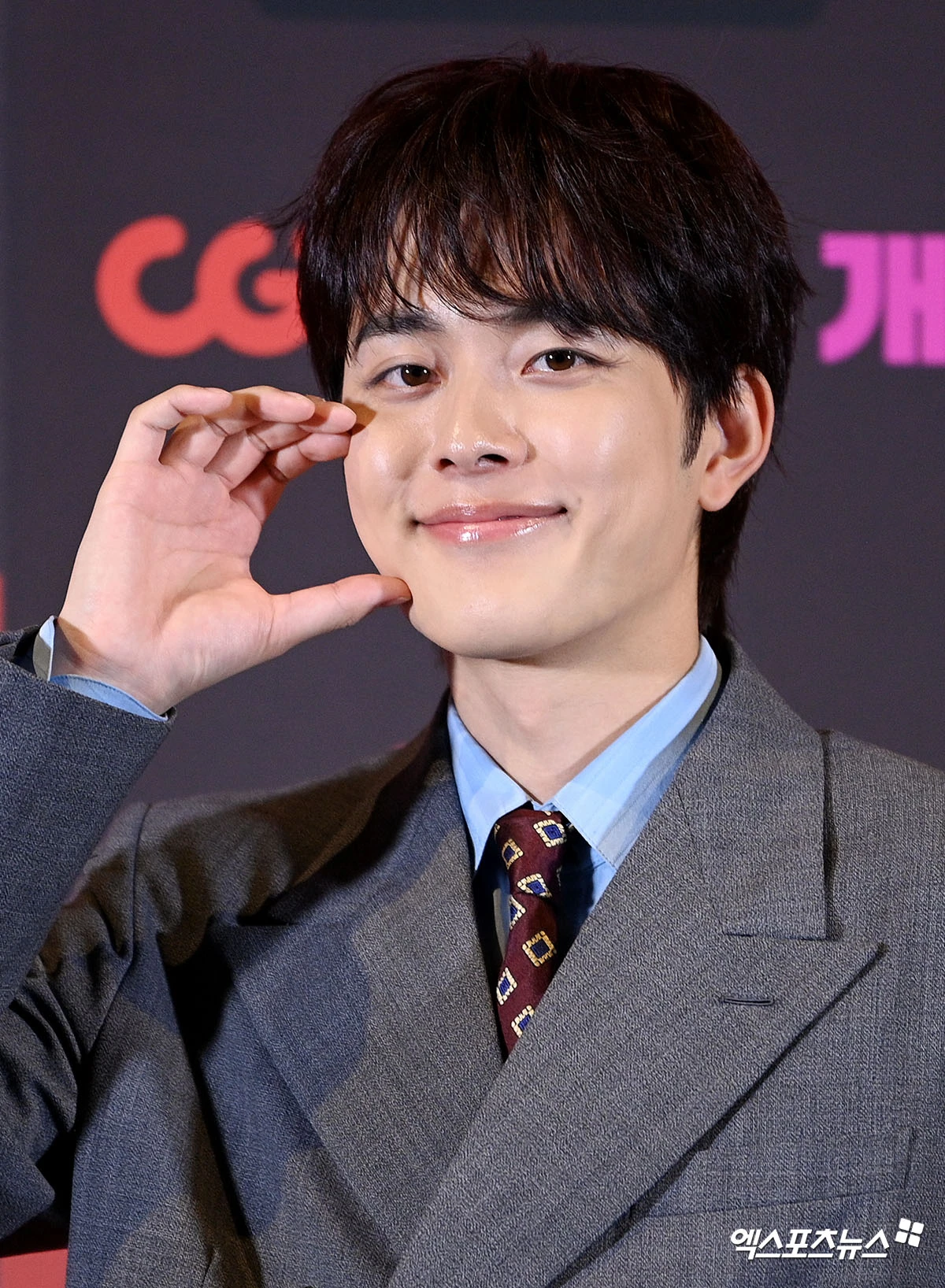 이날 언론시사회에 참석한 배우 유선호가 포토타임을 갖고 있다.