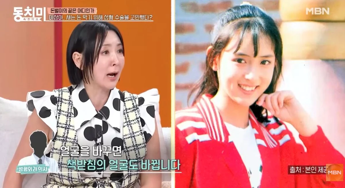 그는 성형외과에서 "예뻐지려고 하는 게 아니라 돈이 새지 않기 위한 것"이라고 설명했다고 밝혔다. 하지만 이상아와 비슷한 나이대의 원장은 "이 얼굴을 바꾸면 책받침의 얼굴이 바뀐다. 안 해줄 건데 다른 데 가서도 할 생각 하지 말라"는 말로 설득했다고.