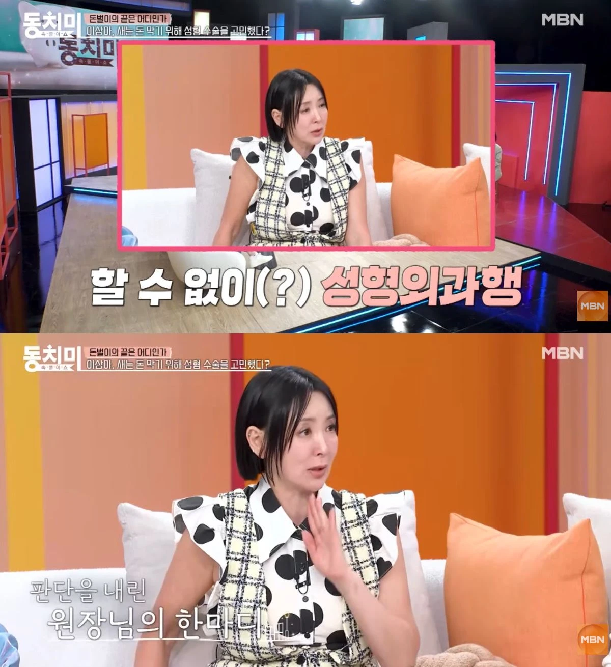 29일 유튜브 MBN Entertainment 채널에는 '이상아, 관상 때문에 성형 수술 고민했다?!'는 제목으로 예능프로그램 '속풀이쇼 동치미'(이하 '동치미') 선공개 영상이 업로드됐다.