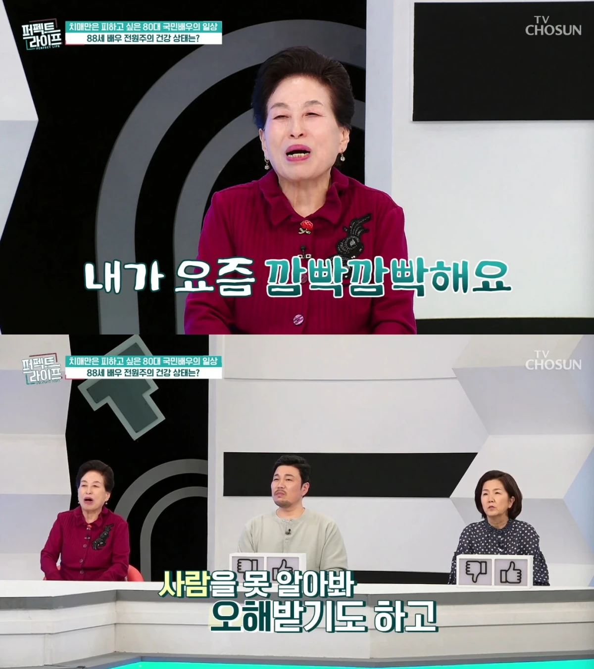 이어 건강 걱정으로는 "내가 요즘 깜빡깜빡하는 게 많아져서 제일 걱정"이라며 "사람을 잘못 알아볼 때가 있어서 오해받을 때도 있다"고 토로했다.