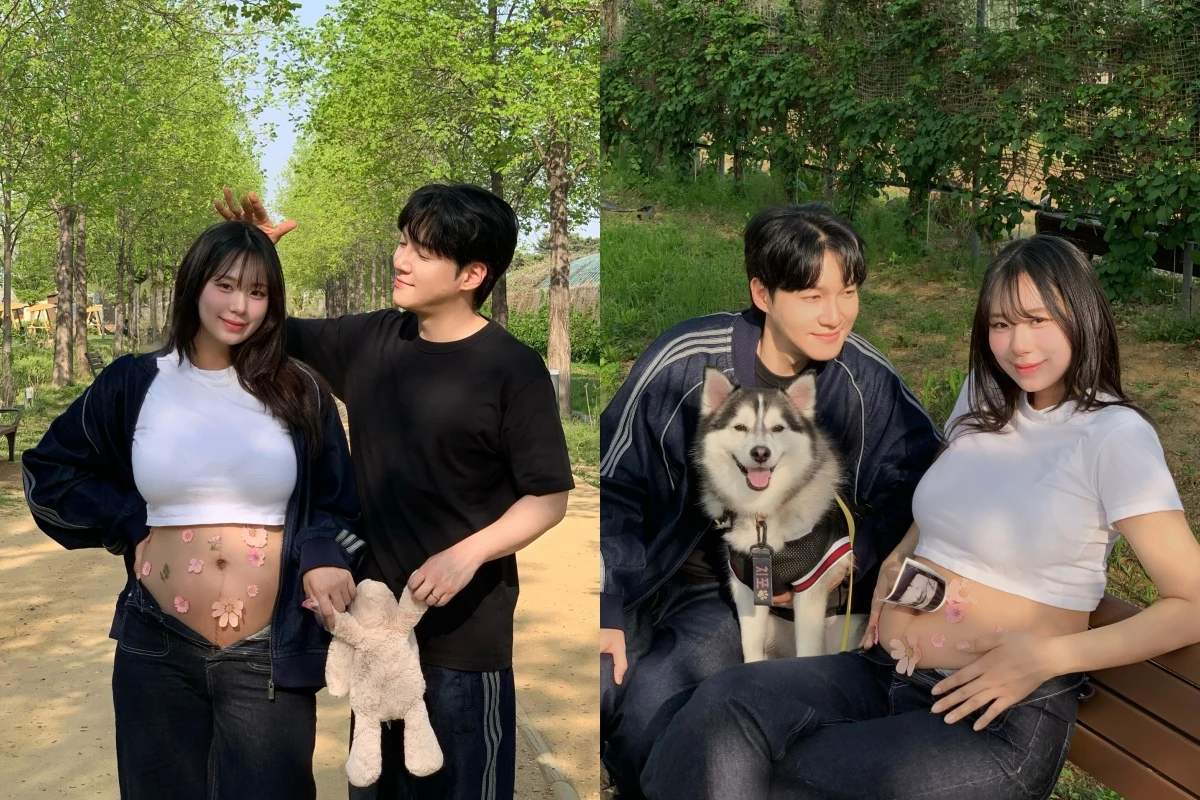 사진 속에는 아기 옷, 인형을 들고 환하게 웃고 있는 최연수, 김태현의 모습이 담겼다. 출산을 앞둔 만삭 D라인이 시선을 사로잡는다.
