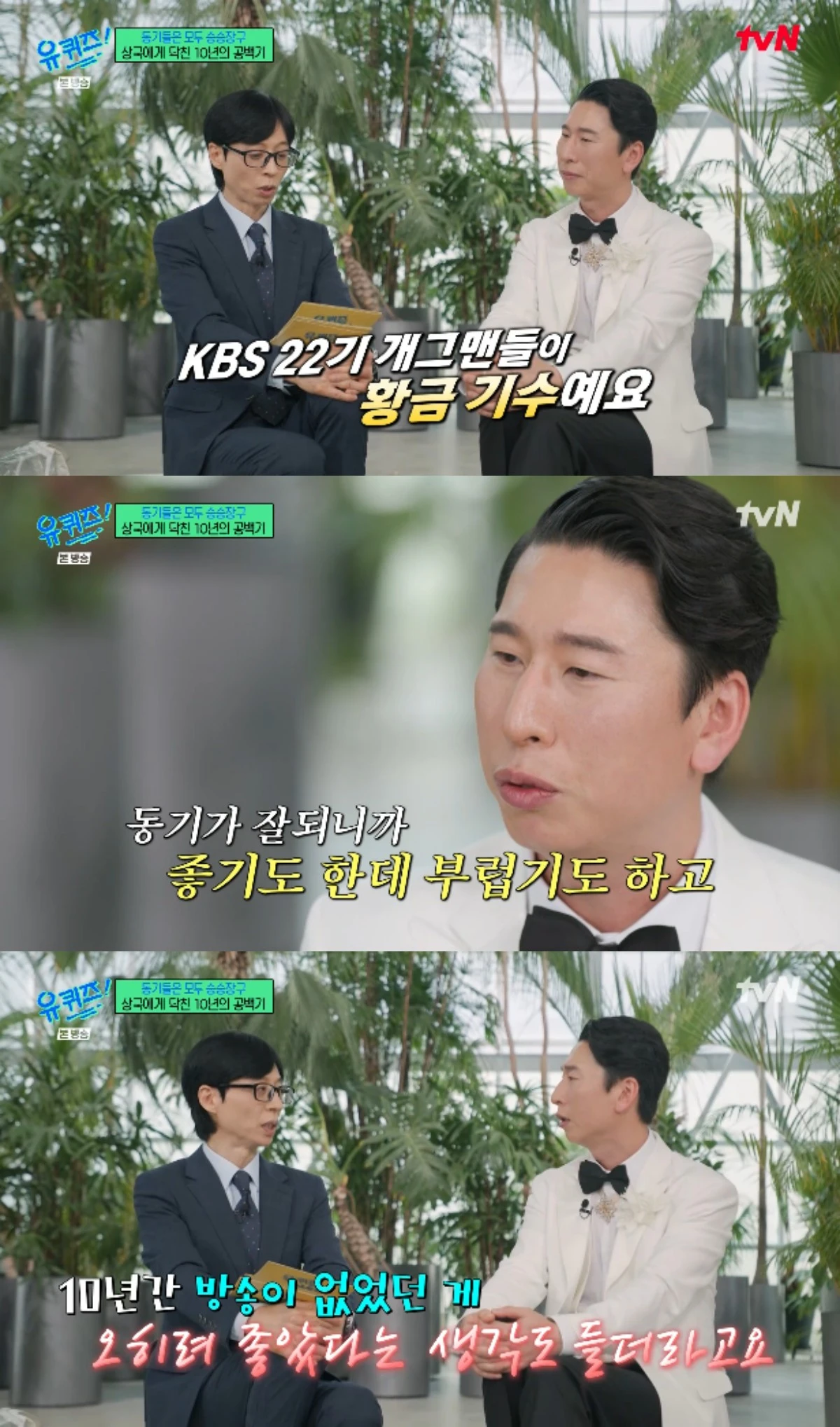 양상국은 "동기가 다 잘됐다. 동기들이 잘되니 좋기도한데 부럽기도 했다. '나는 왜 안될까' 자책도 하고. '개콘' 때는 그래도 동기들을 따라는 갔던 것 같은데, '개콘' 이후에 제가 10년간 큰 활약이 없었다"고 했다.