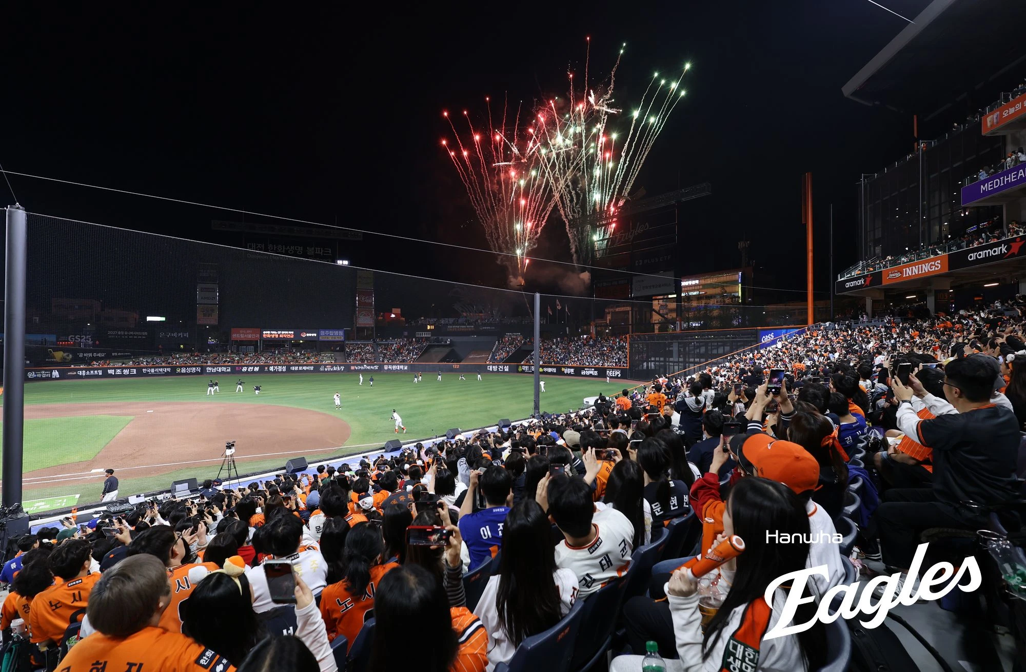 6회초가 시작되기 전에는 한화가 준비한 불꽃놀이가 약 2분간 펼쳐졌다. 한화 관계자는 "오늘도 홈구장을 찾아주신 팬여러분을 위해 회장님께서 전해드리는 선물로 클리닝타임에 약 2분간 불꽃쇼가 진행된다"고 설명했다.