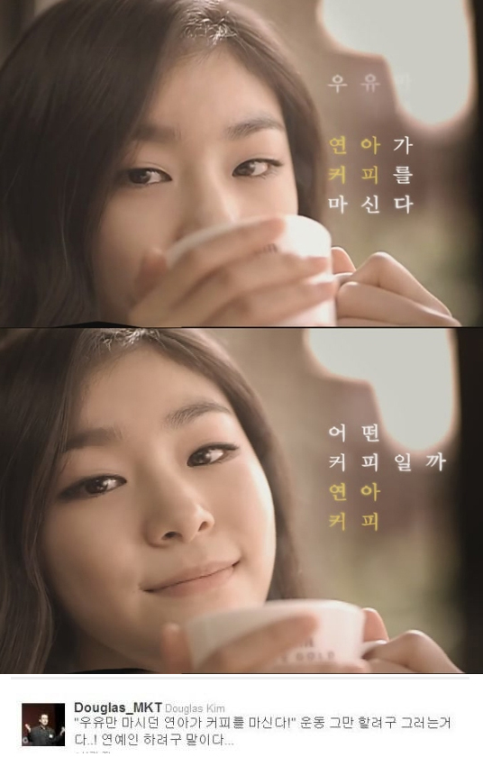 ▲김연아 비방글 '논란' ⓒ 김연아가 최근 출연한 커피CF & 더글라스 김 트위터