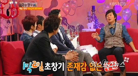 7일 방송된 KBS '승승장구-100회 특집 MC 스페셜'에 출연한 이수근은 초창기 예능 출연에 대한 어려웠던 점을 고백했다.