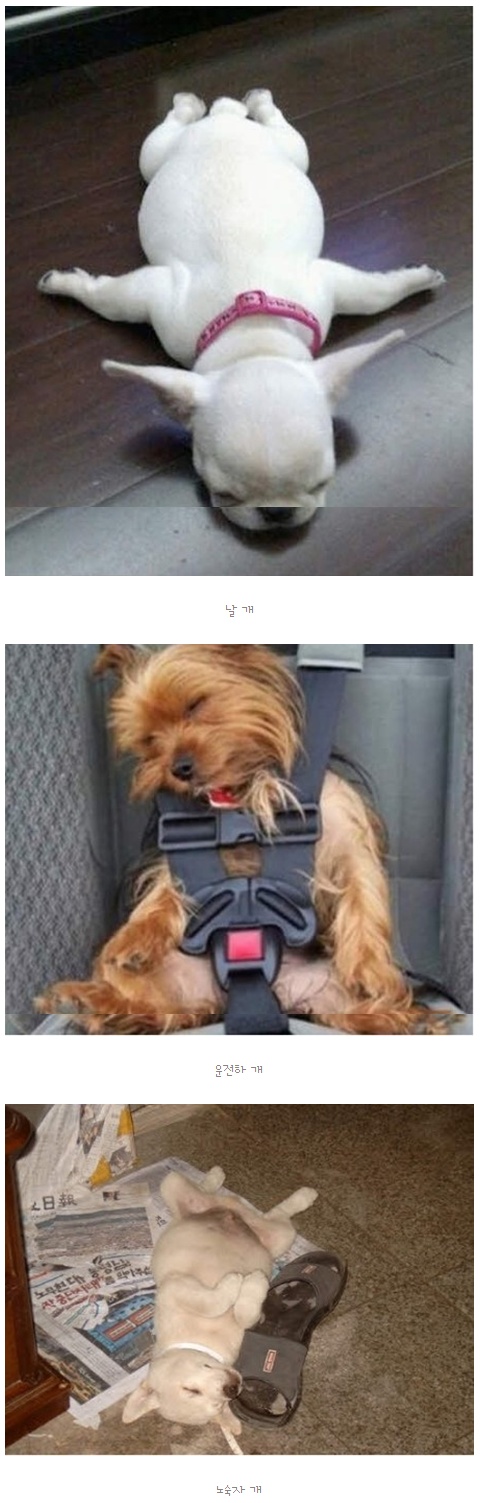 각각의 사진에는 귀여운 강아지들의 잠자는 자세와 함께 간단한 이름이 붙어 있어 보는 이들의 웃음을 자아낸다.