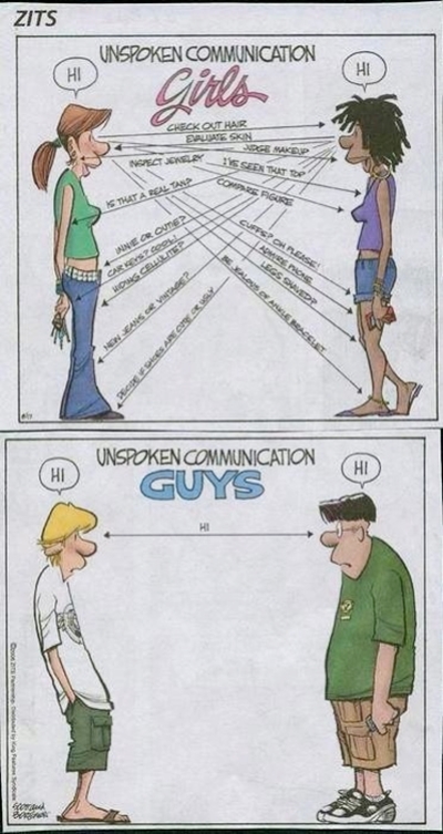 게시물의 내용을 살펴 보면 여성은 같은 여성을 볼 때 머리부터 발끝까지 세세히 살핀다. 몸매는 물론 헤어스타일이나 메이크업, 어떤 소지품을 가지고 있는지까지 세세히 살피고 나름의 판단을 내린다.