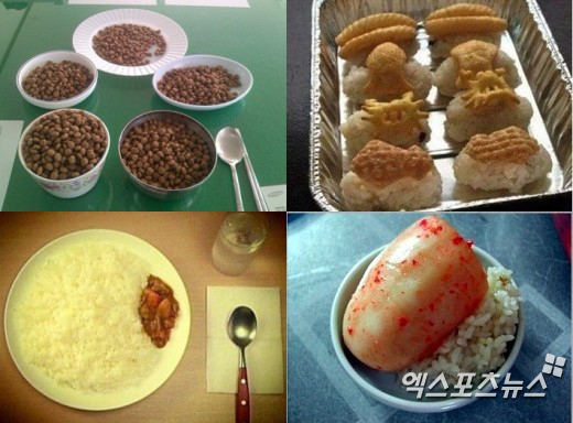 공개된 사진 속에는 개 사료로 차린 밥상과 과자로 초밥을 만들어 주는 등 아주 형편없는 밥상이 차려져 있다. 남편과 싸운 아내가 그 다음날 원망스러운 마음을 밥상에서 표현한듯하다.