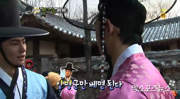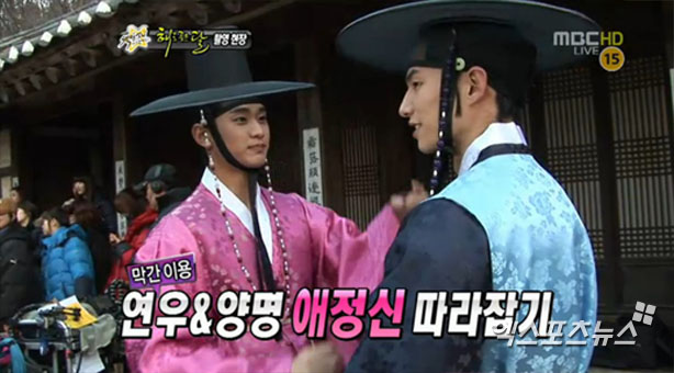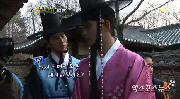 26일 방송된 MBC '섹션TV 연예통신'에서 '해를 품은 달'드라마에서 촬영중인 김수현(훤)과 송재림(운)은 한가인(연우)과 정일우(양명)를 따라했다.